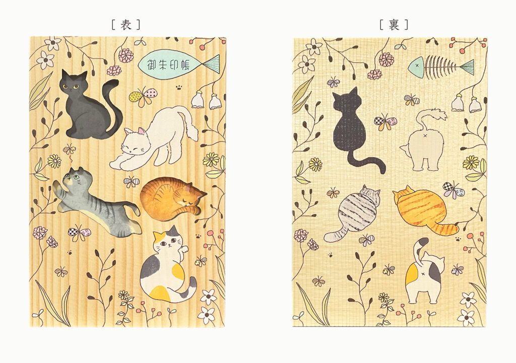 天然木の御朱印帳 「猫と野花」